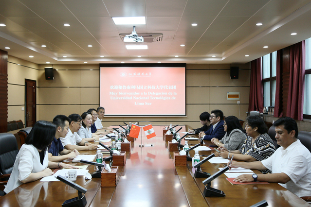 On the afternoon of September 15th, the delegation of Universidad Nacional Tecnológica de Lima Sur (UNTELS) visited Jiangsu Normal University (JSNU), and President Du Zengji met with the delegation.