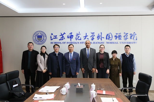 On January 23, Albert Panton León, the newly appointed Consul General of Cuba in Shanghai, accompanied by Lisbet Díaz Rodríguez, First Consul, led a delegation to visit Jiangsu Normal University (JSNU). The delegation was received by Zhu Jing, Deputy Director of the Foreign Affairs Office of Xuzhou Municipal People’s Government. President Du Zengji met with the delegation, accompanied by heads from JSNU’s Office of International Affairsand School of Foreign Studies.